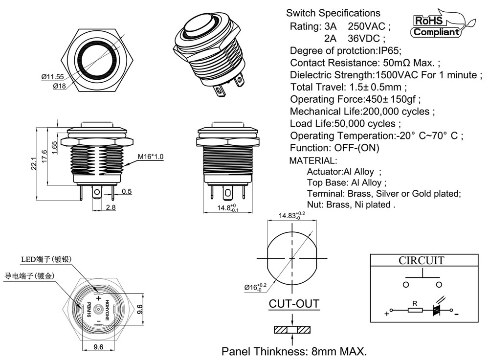 上一篇:PBM16-11M-F-PG3-A6-S 單色LED燈